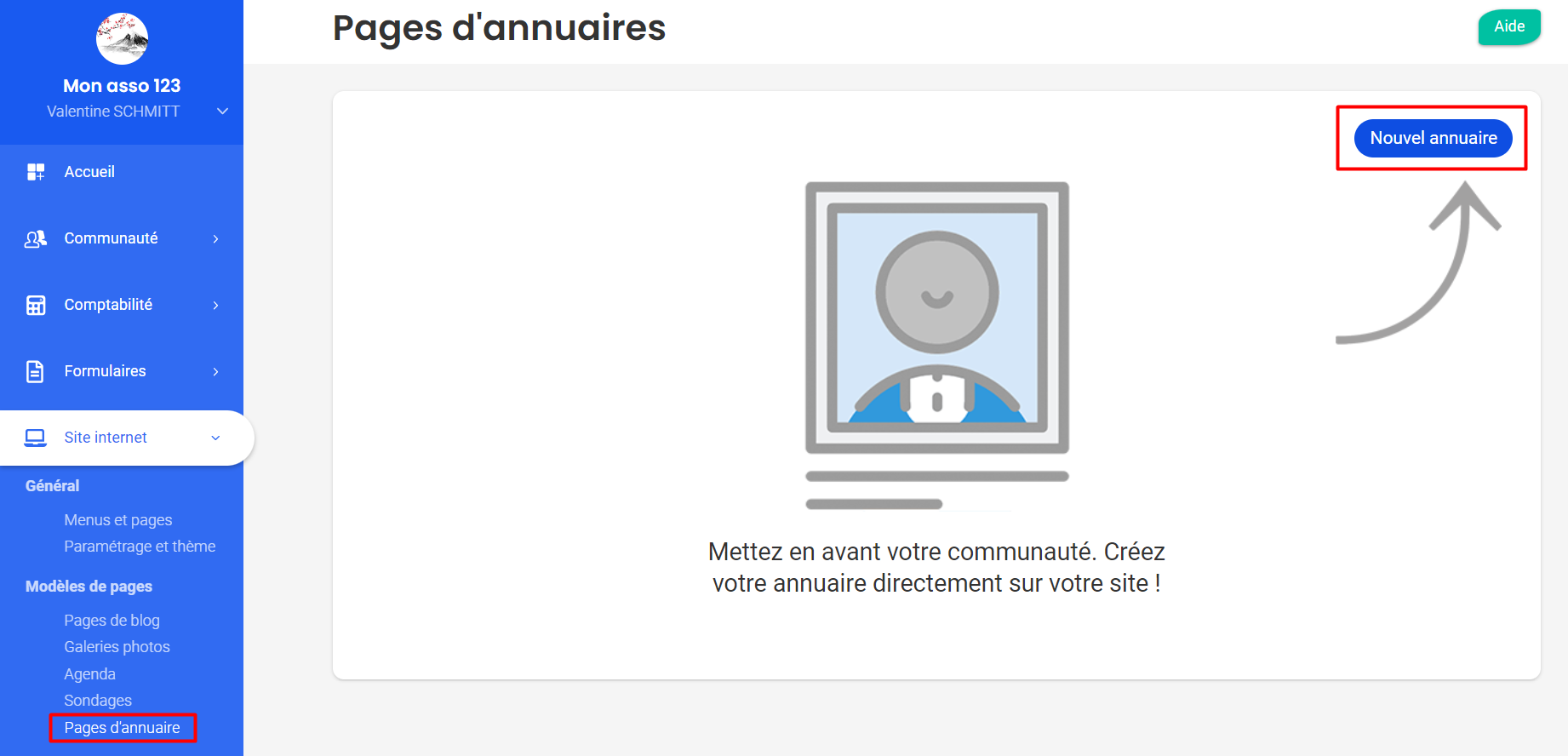 Désormais, l’annuaire apparaîtra dans Site internet > Modèles de pages > Pages d’annuaire. Il ne vous reste plus qu’à cliquer sur le bouton Nouvel annuaire pour créer le vôtre !