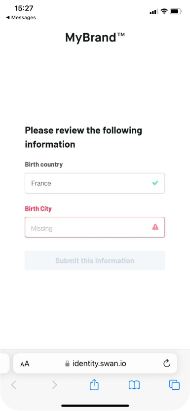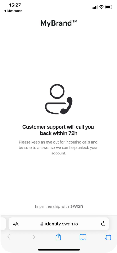 En cas de succès, un SMS indiquant que l'identité est validée est envoyé. Félicitations !