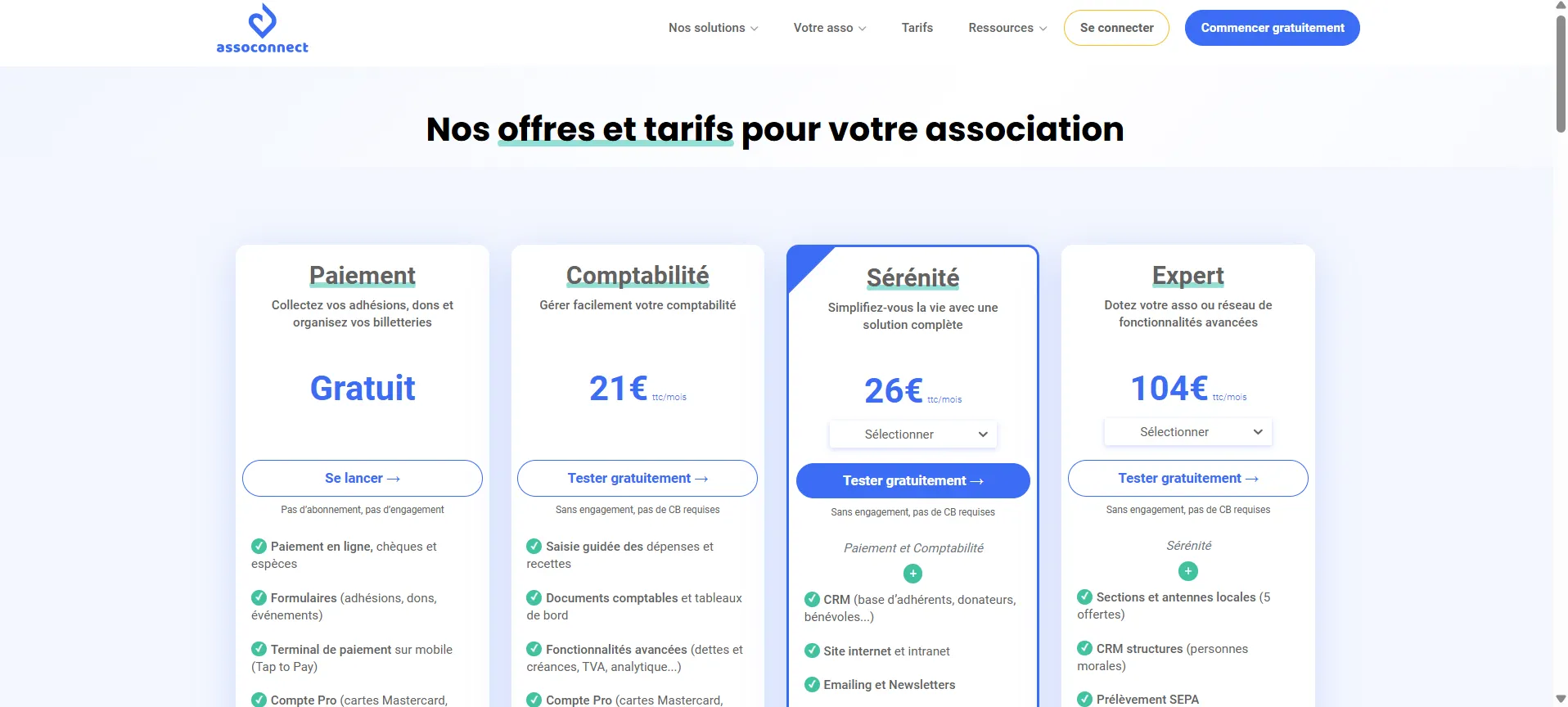AssoConnect propose plusieurs offres pour répondre aux différents besoins des associations. Certaines de ces offres sont gratuites (sans abonnement, ni engagement), d'autres sont payantes.