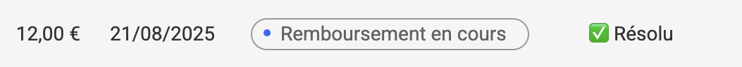 Cliquer sur Rembourser et marquer comme résolu: cela fermera le panneau, déclenchera le remboursement et l’incident apparaîtra comme résolu.